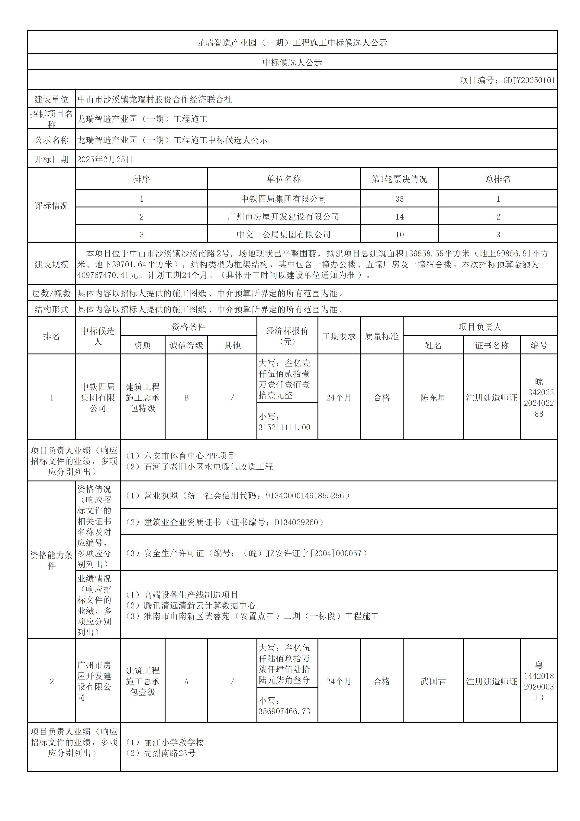 龍瑞智造產(chǎn)業(yè)園(一期)工程施工中標(biāo)候選人公示